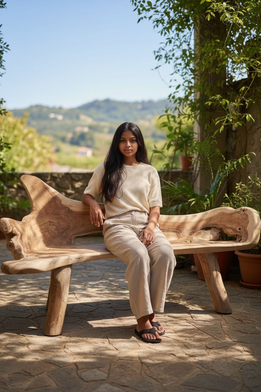 Πάγκος από φυσική ρίζα ξύλου Teak.